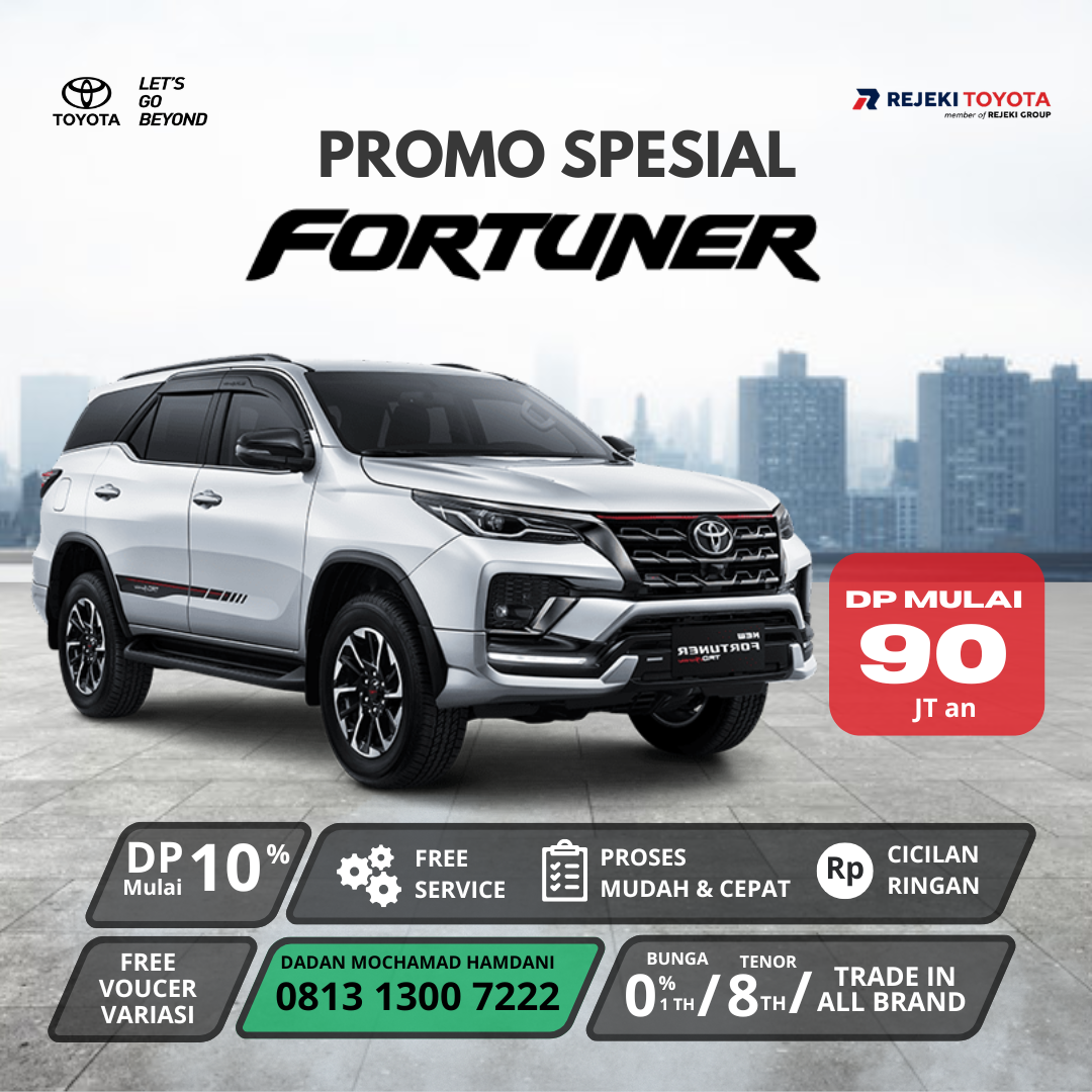 Promo spesial mobil baru DP murah untuk New Innova Zenix 2026! Cukup mulai dari DP 60 jutaan, kamu sudah bisa membawa pulang unit impian. Nikmati juga penawaran bunga 0% dengan pilihan tenor fleksibel hingga maksimal 8 tahun. Selain itu, tersedia program trade-in untuk semua merek mobil lama kamu, jadi makin mudah upgrade kendaraan. Dilengkapi juga dengan layanan T-CARE dari Toyota, berupa gratis biaya jasa servis dan suku cadang hingga 7 kali dalam 3 tahun atau 60.000 km. Ditambah Extended Warranty selama 1 tahun atau 20.000 km, dengan syarat melakukan servis rutin setiap 6 bulan sekali.